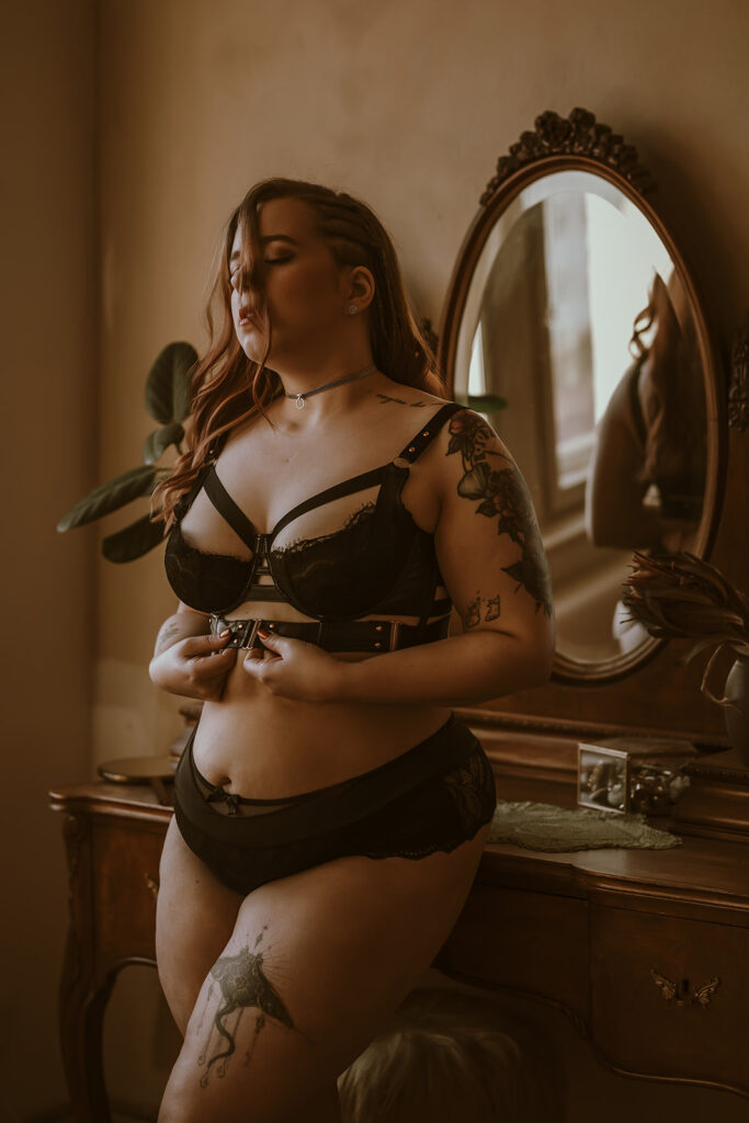 Gemeinsam erweitern wir deine Komfortzone und du bekommst den Mut, lauter zu sein und dich nicht mehr zu verstecken. Ein Boudoirerlebnis mit mir kann deine Scham für deinen Körper verringern und selbstermächtigend sein. Der Fokus liegt darauf, was dir gut tut und womit du dich wohl fühlst, ganz egal, was „die Leute denken könnten“.